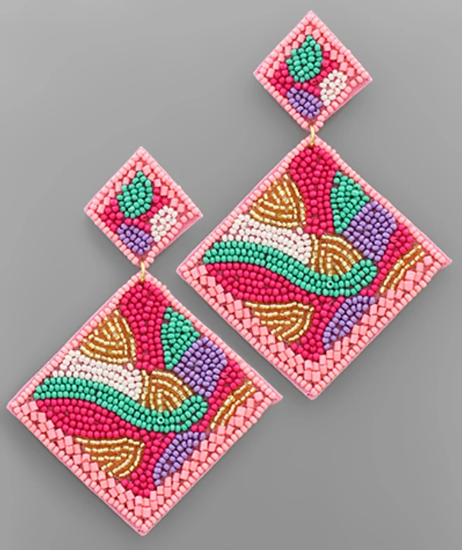 These beautiful beaded earring are stunning and a must have!! They have all the fun bright colors you’re going to need for summer.