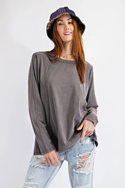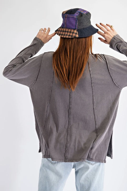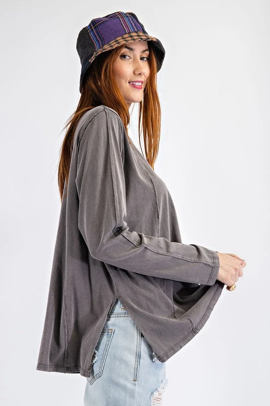 We are having all the love for this boxy knit pullover top! So comfy, and super cute, featuring mineral washed ash knit, crew neckline, raw seam details, long sleeves, and side slits in the bottom hemline for added comfort. You will love how great you feel in this babe, while running errands, hanging out with friends, or enjoying a much deserved day off. Soon to be your new favorite go-to!