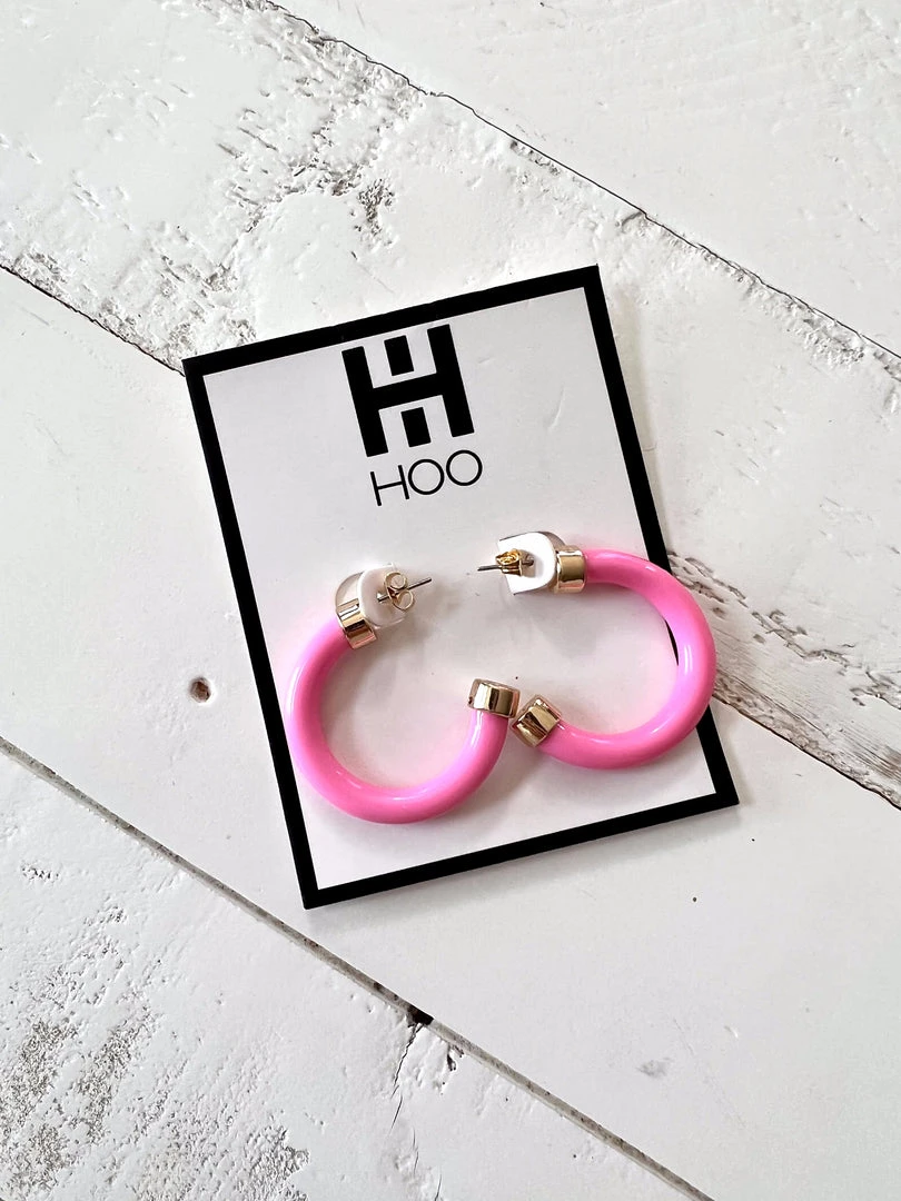 These babes are sooo cute! Acrylic mini hoop earrings in bubble gum, hypoallergenic, and lightweight. Love, love, love!!