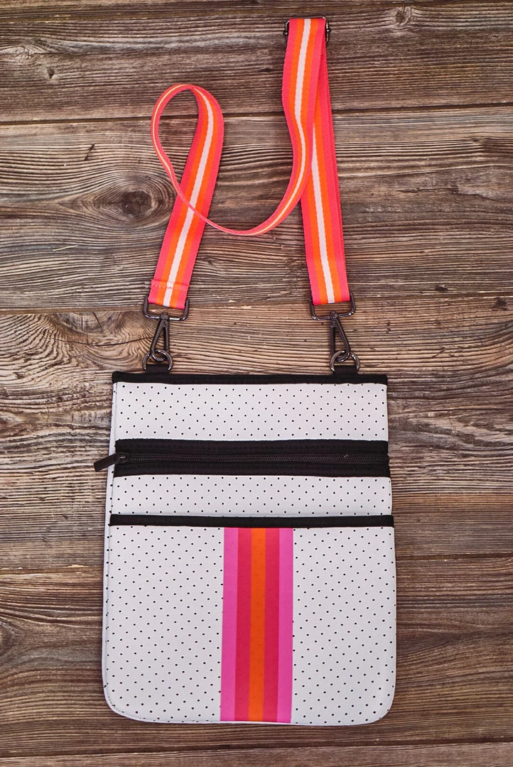 The super lightweight neoprene crossbody bag that you need in your life! Not only is this bag a necessity for you, but also great for a gift! Bag features a zipper closure, front pocket, adjustabgle guitar straps.