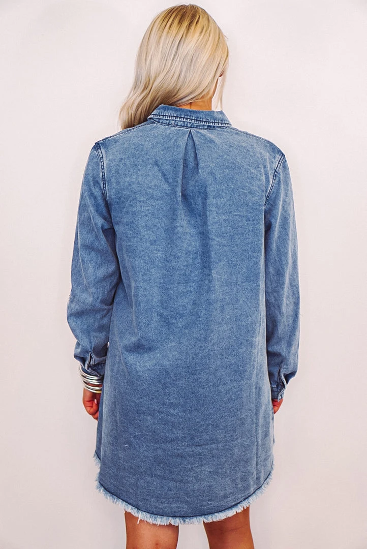 Long sleeve denim button down dress