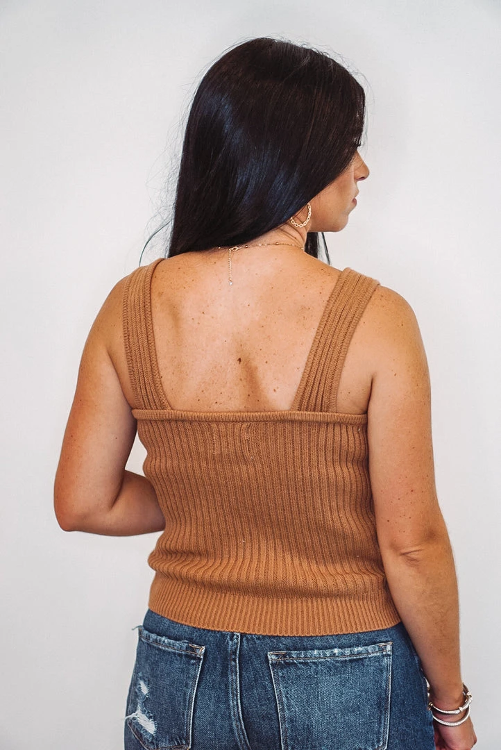 Tan Ribbed Knit Sweater Semi Cropped Tank Top