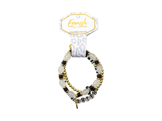 This stack features a gorgeous combination of white, black and gold colored beads! This faith cross bracelet makes the perfect gift!