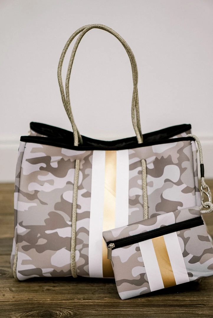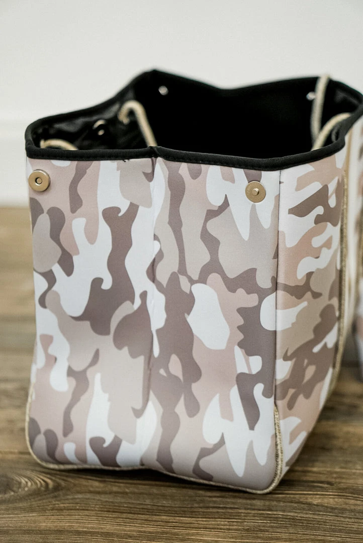 neoprene fall camo print tote bag