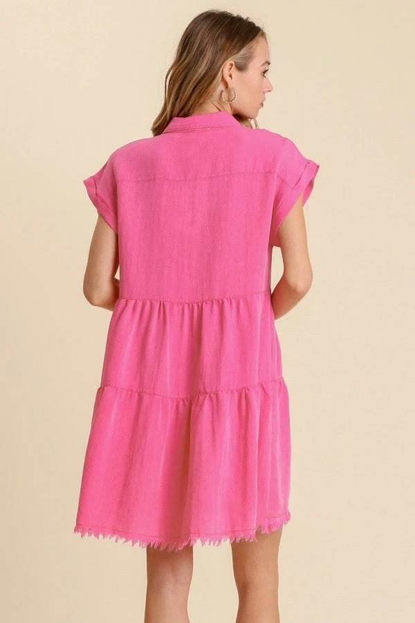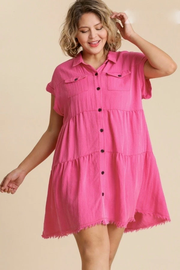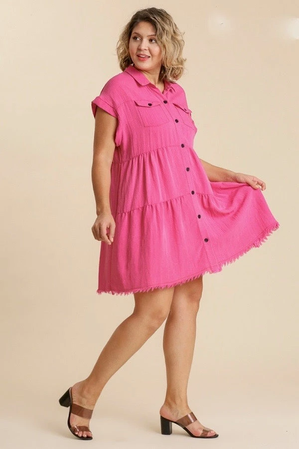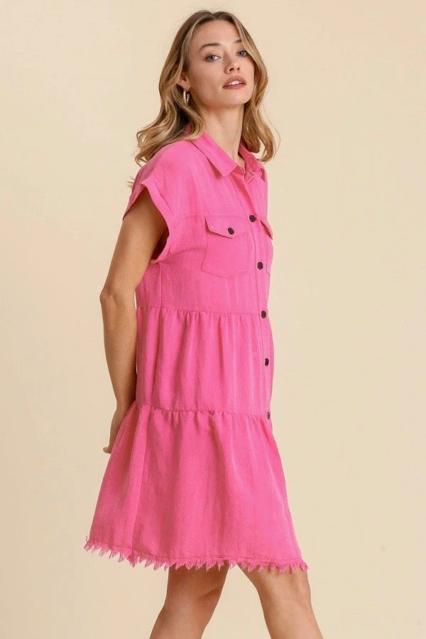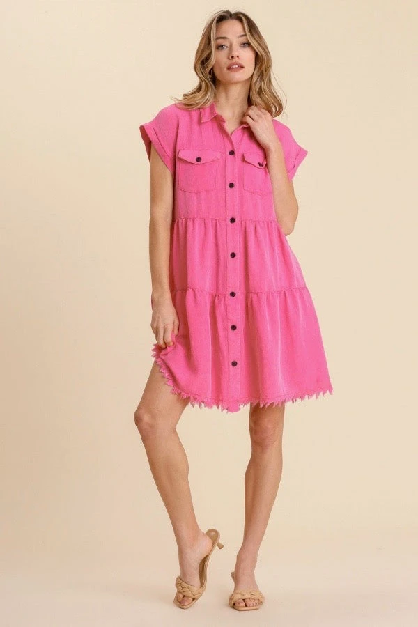 Ladies hot pink tiered button down dress