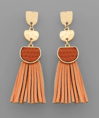 Only the cutest leather fringe tassel earrings in this gorgeous clay color! Can you say the ultimate accessory?! This color will pair with all your fave boho vibe outfits!