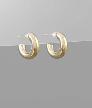 We love a mini hoop! These cuties are chunky brass mini hoop earrings in gold, and will match everything!