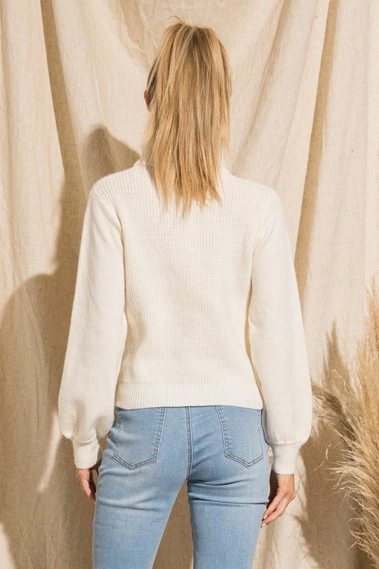 Ladies ivory turtle neck sweater with cut out