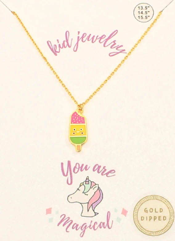 Fun little necklace for the little one. Gold dipped chain with yellow ice cream pendant.