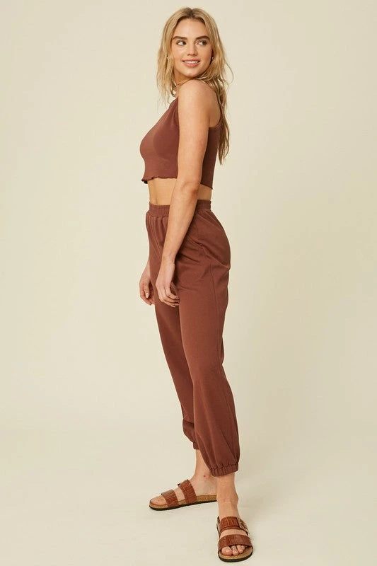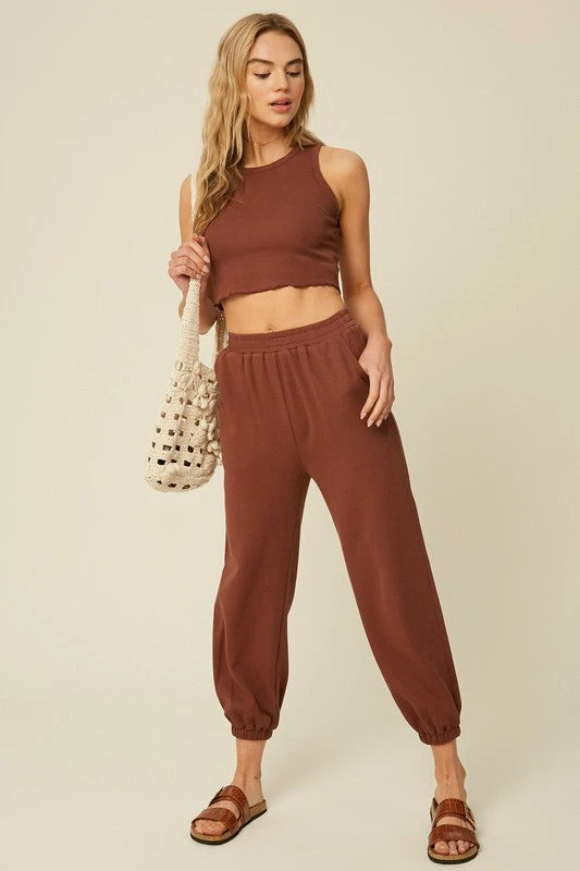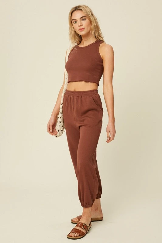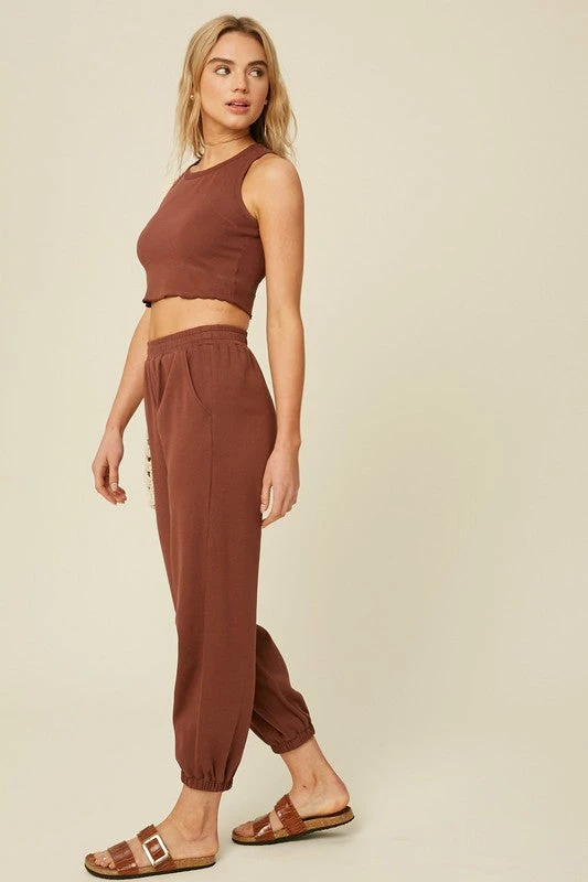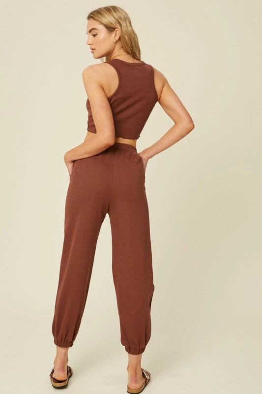 Chestnut racer crop top and jogger pants set