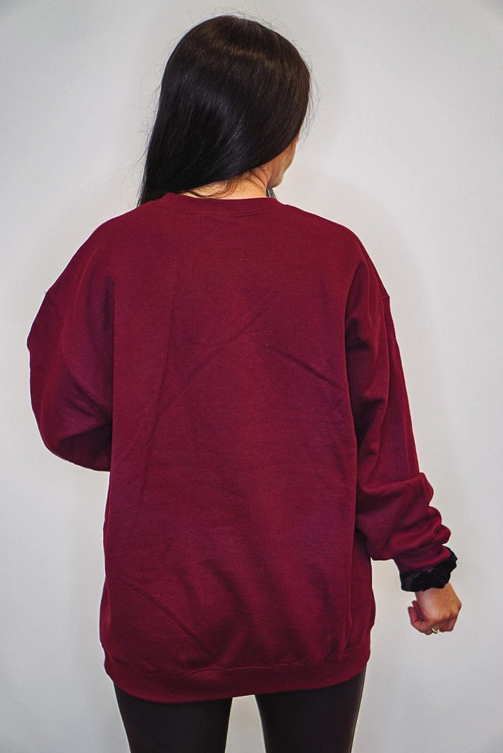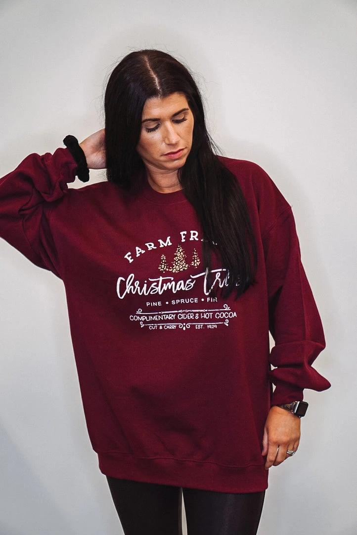 Heathered burgundy Christmas tree farm graphic sweatshirt