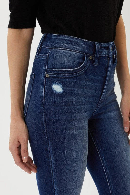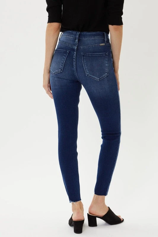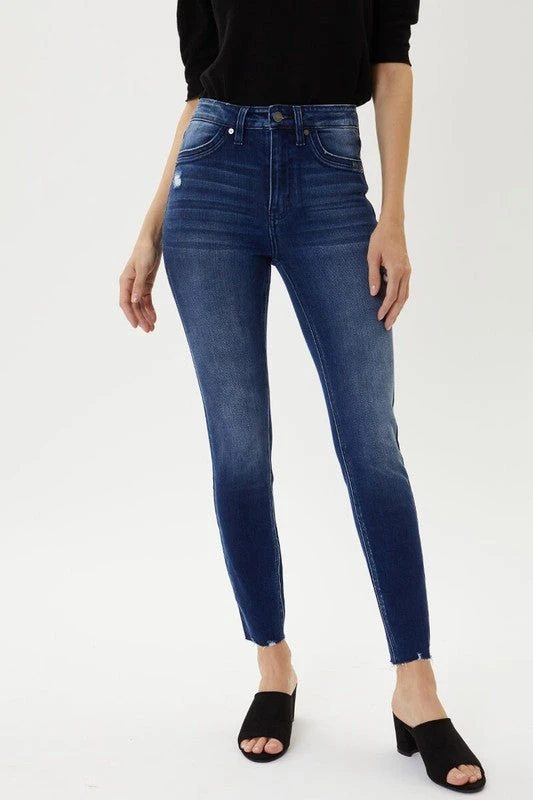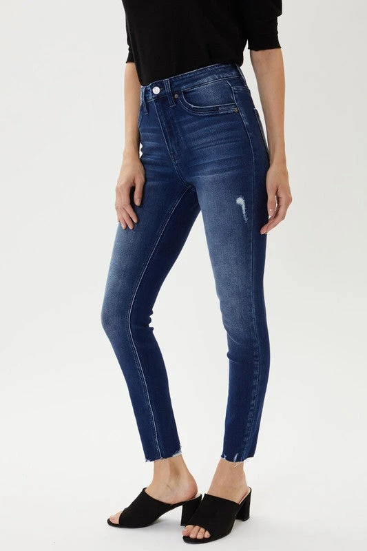 Another of our faves! Love the dark wash with just a hint of distressing and the raw ankle hem.