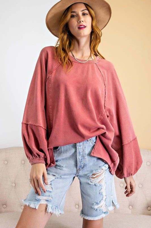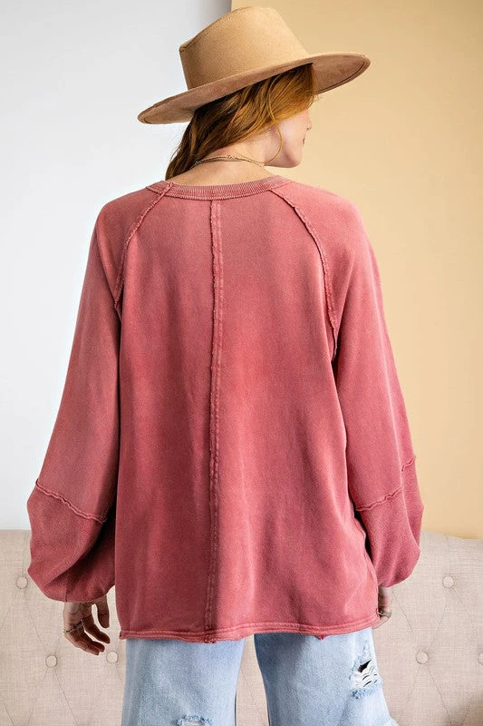 Strawberry cream mineral washed french terry knit pullover top