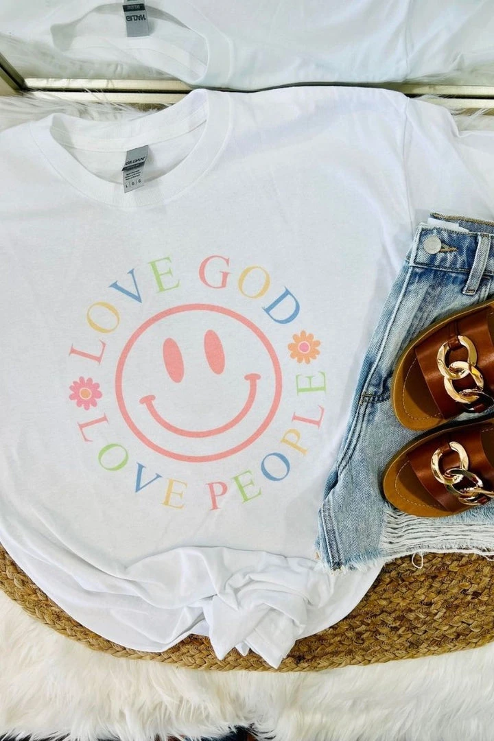 Love God, Love People Graphic Tee. The cutest tee for summer. Pair with our ‘Active Babe Shorts’ or our ‘Colorblock Shorts’