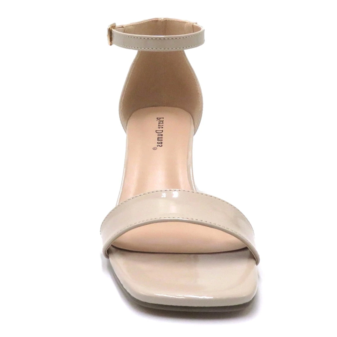 Nude patent heel sandals