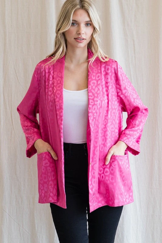 Hot pink satin monochromatic leopard print blazer