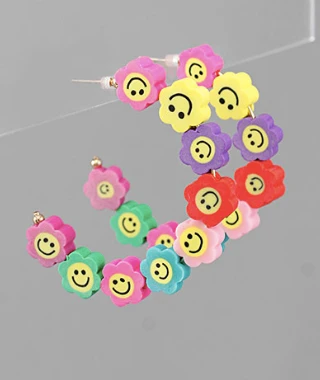 Nothing is cuter than these hoops! Multicolor rubber flower smiley face hoop earrings. Perfect for Spring and Summer!!
