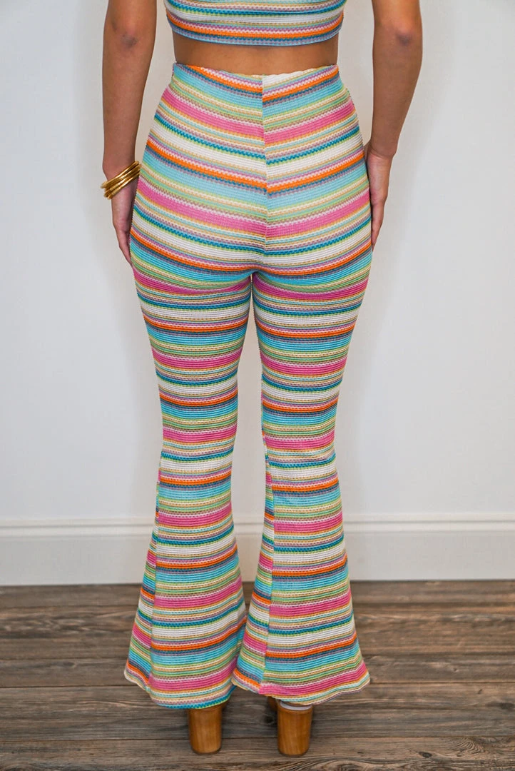 Multicolor striped halter top and flared pants set