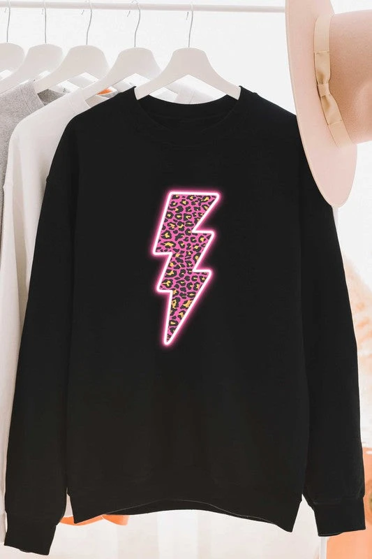 Black sweatshirt with neon pink and leopard print lightning bolt