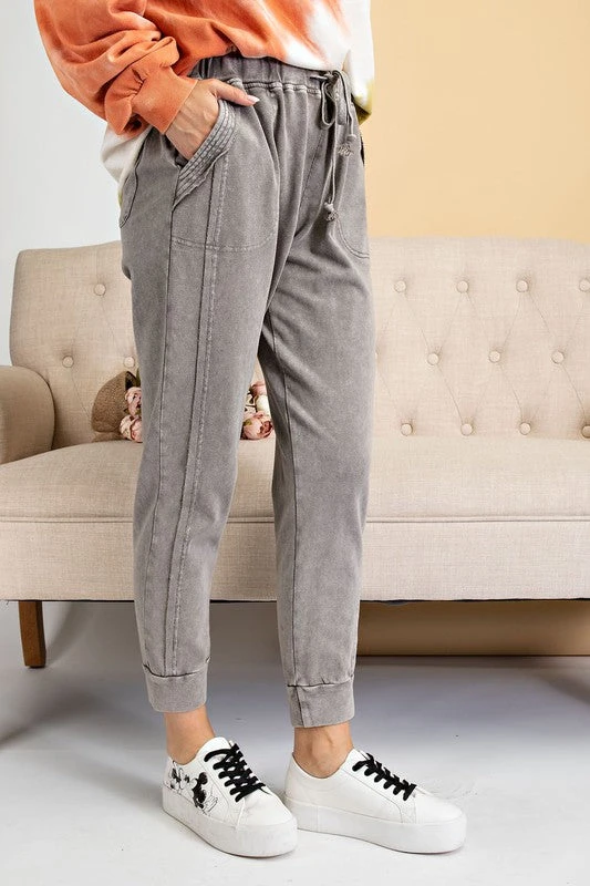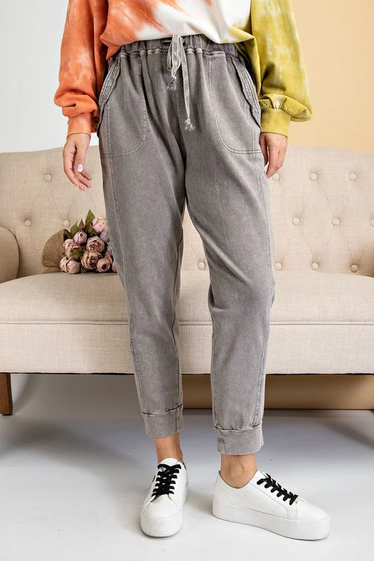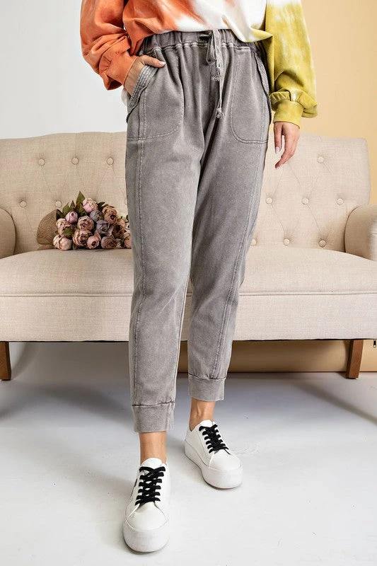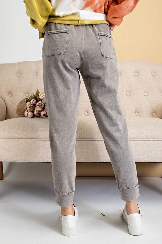 Ash grey mineral washed french terry jogger pants
