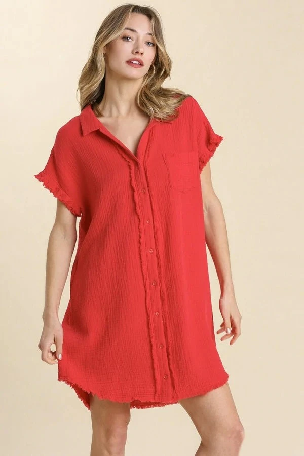 You can never go wrong with a button down dress! Would be absolutely perfect for vacay and doubles as a swim cover up or a simple summer dress with sandals!