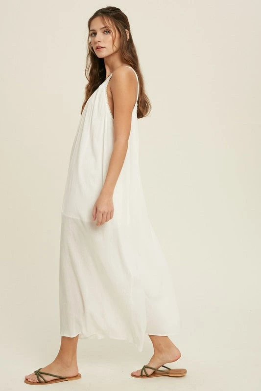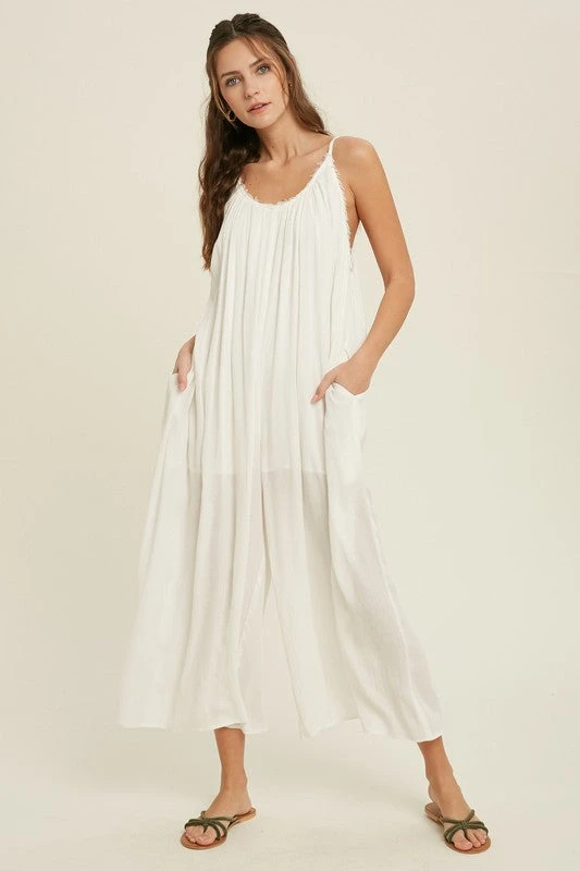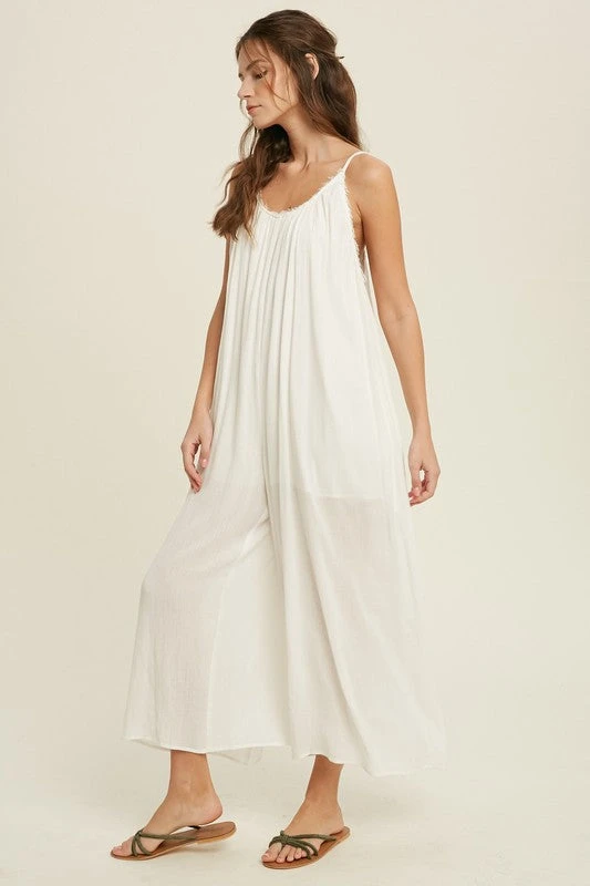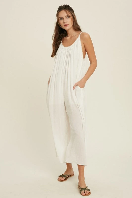 Ivory loose fit jumpsuit with adjustable spaghetti straps