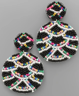 Multi color beaded earrings with black and white wave pattern