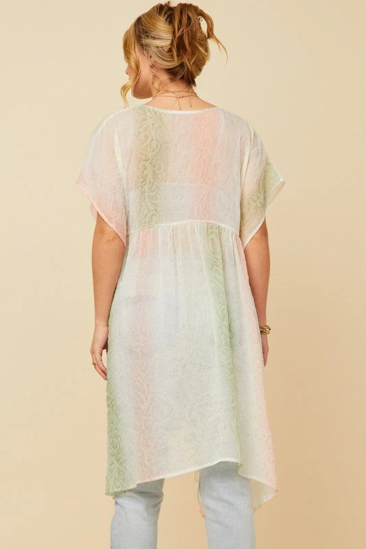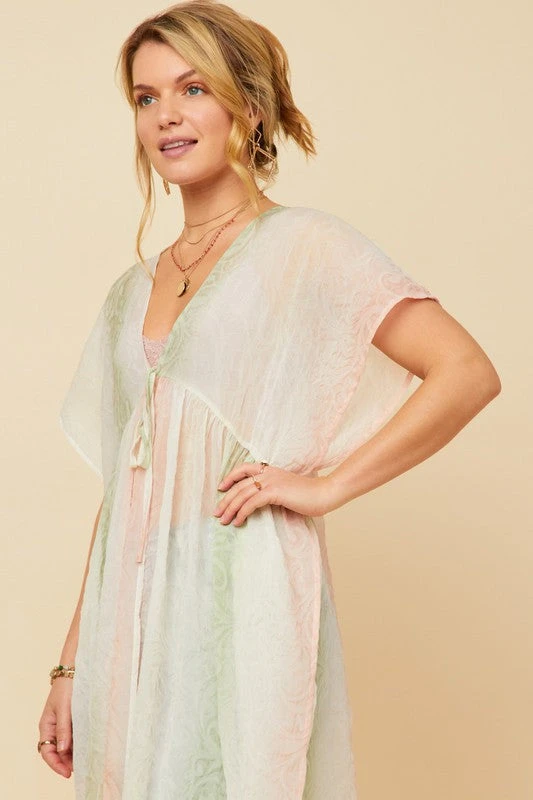 Blush, ivory, and sage ombre embossed chiffon kimono