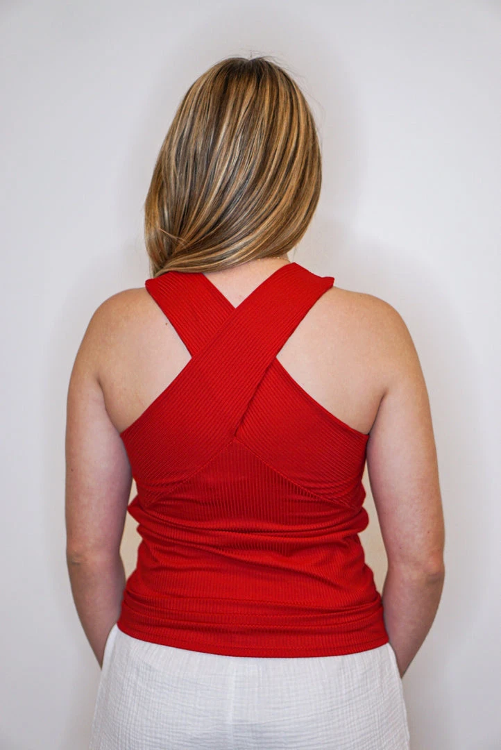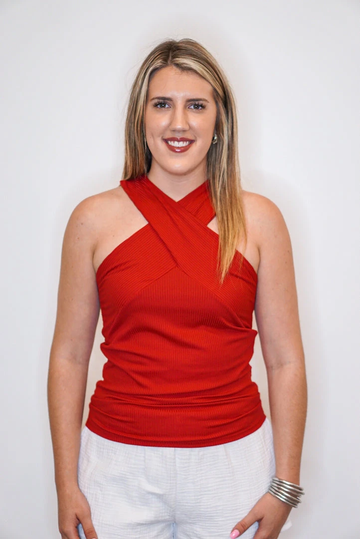 Red criss cross halter tank top