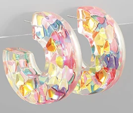 Hoop earrings are a must have this season! We are loving these multi color resin chunky hoops. They are perfect for all of your upcoming events!