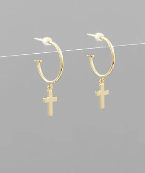 Purple Door Boutique Jewelry Cross Dangle Gold Hoop Earrings