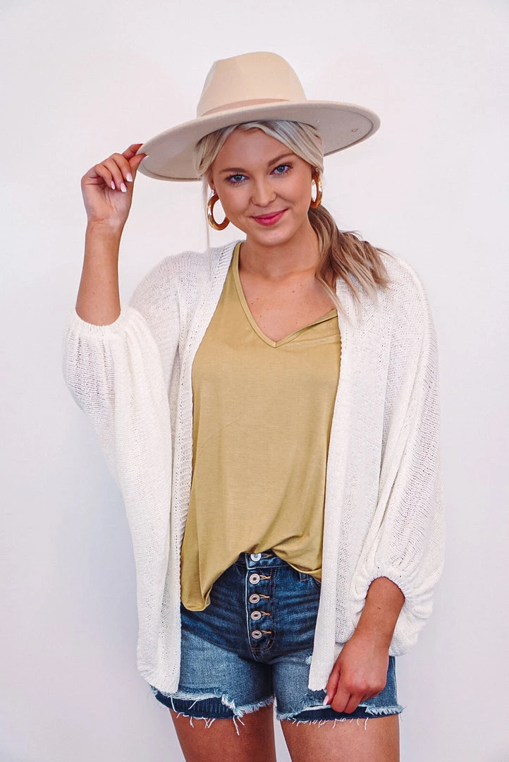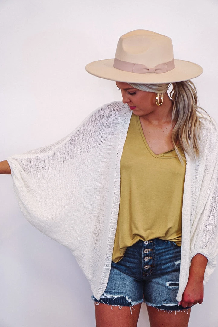 How fabulous is this timeless cardigan? This stylish little number features a leaf motif design in back, and has dolman 3/4 length sleeves. This cozy babe is perfect for those Spring and Summer days, pair her with a simple tee, shorts, and sandals for a cute casual look!