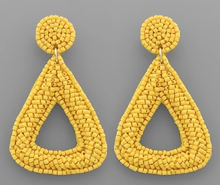 A must have for Spring and Summer! These beautiful beaded earrings are fun and trendy, featuring yellow beads in a rounded triangle shape.