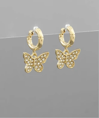 pave butterfly huggie hoop earrings
