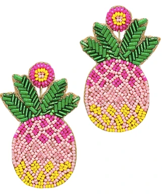 A must have for Spring and Summer! These beautiful pineapple earrings are fun and trendy, featuring pink, yellow and green beads. Soooo CUTE!!