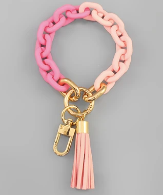 Such a fun and cute keychain! Light and dark pink chain link bracelet keychain with light pink tassel. Love, love, love!
