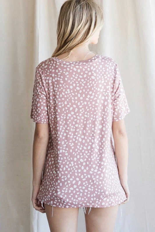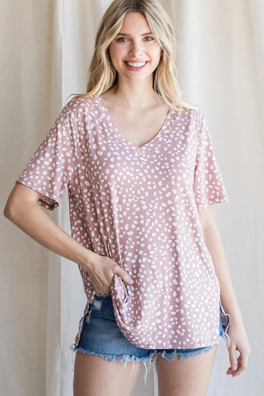 Spotted Light Brick V Neck Short Sleeve Top