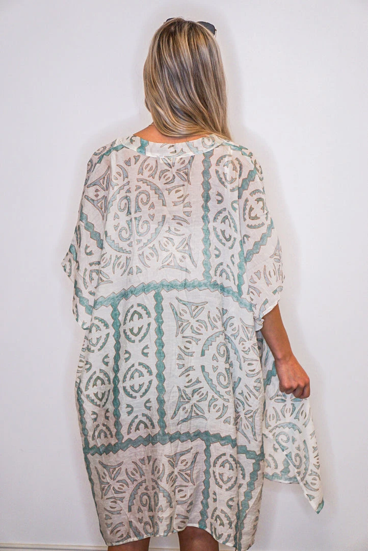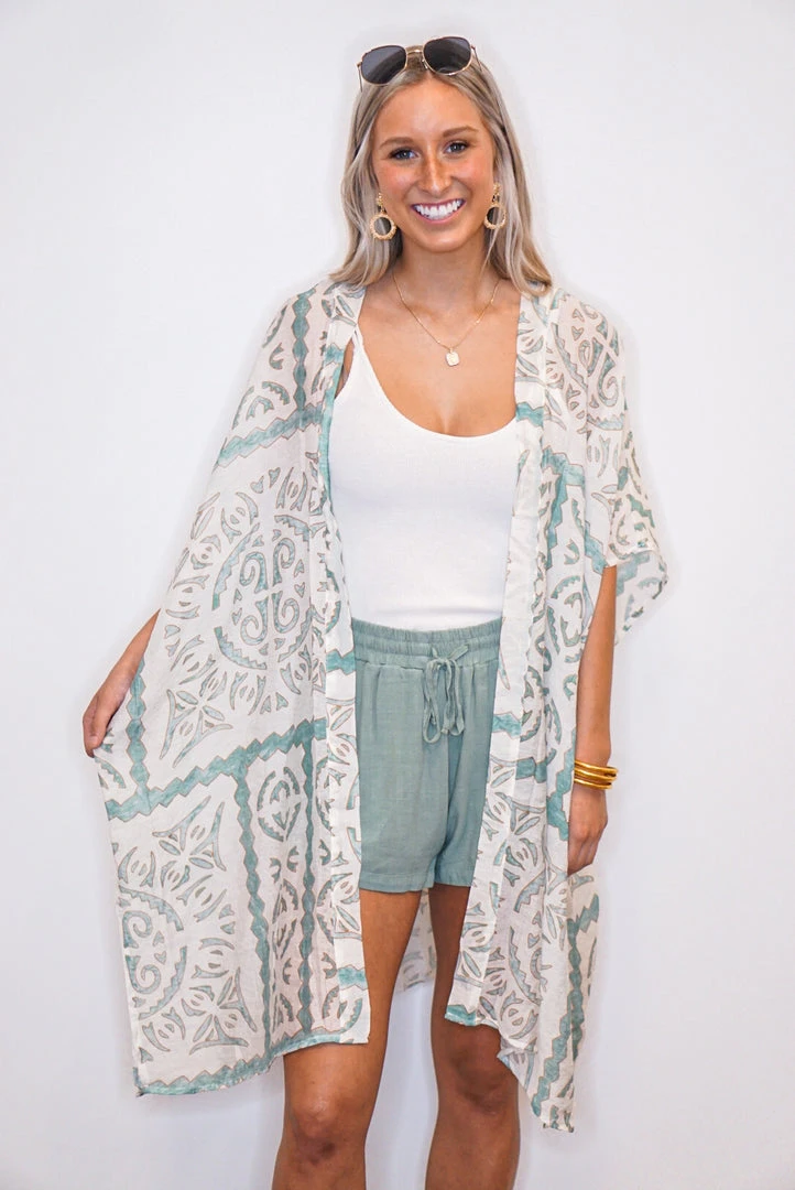 We are feeling all the Summer vibes with this fabulous kimono! Lightweight fabric in an open style, featuring draped short sleeves, side slits in bottom hemline, and a relaxed flowy fit. Perfect for those upcoming Summer days! Wear layered over your cute outfits, or as a swimsuit cover. So versatile!