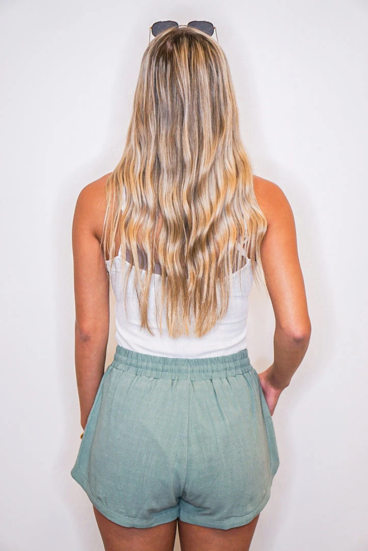 We are absolutely in love with these super cute sage linen shorts! Featuring a drawstring elastic waist, front pockets, side slit, and a lightweight flowy feel. These babies will be perfect dressed up or down, and will give you comfort and style both ways. You’ll want to wear them everywhere!