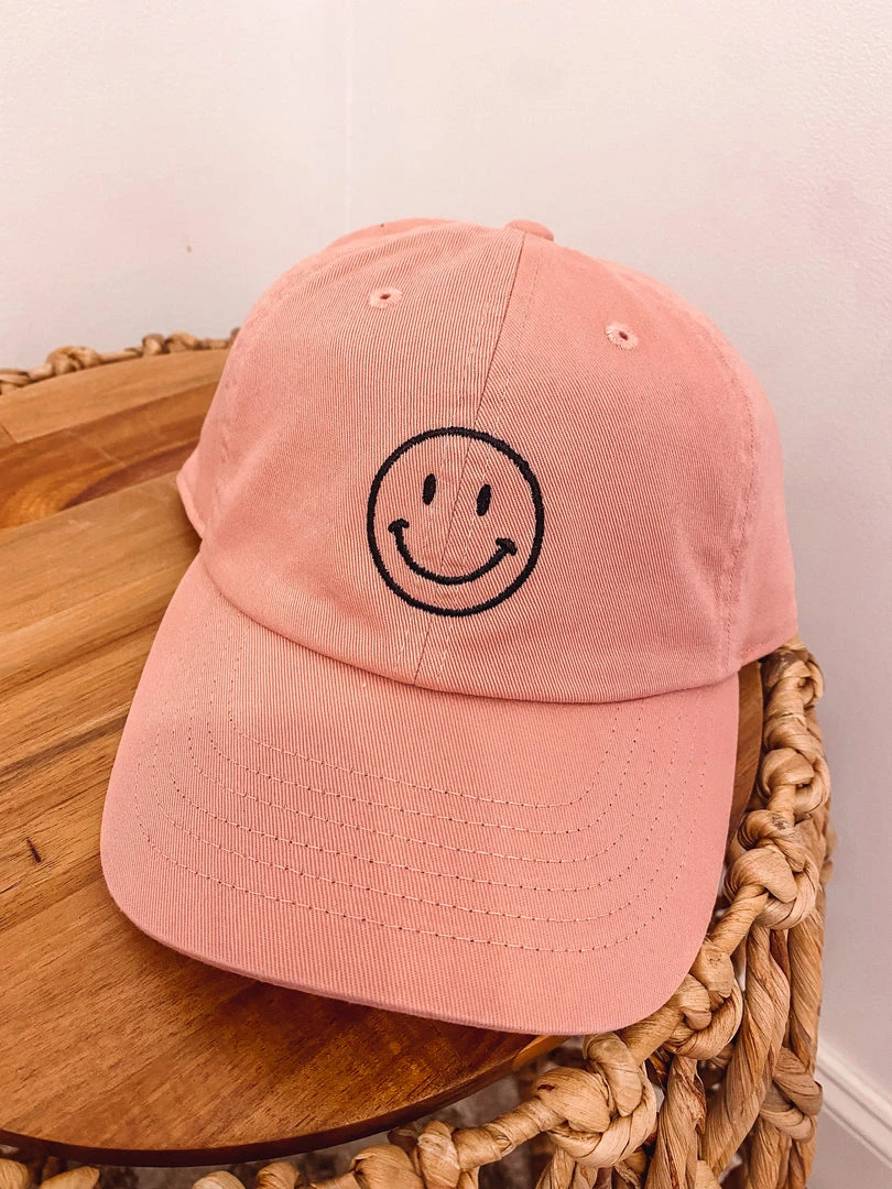 Stay smiling everyday in the cutest embroidery smiley face baseball cap! Features an adjustable metal clasp.
