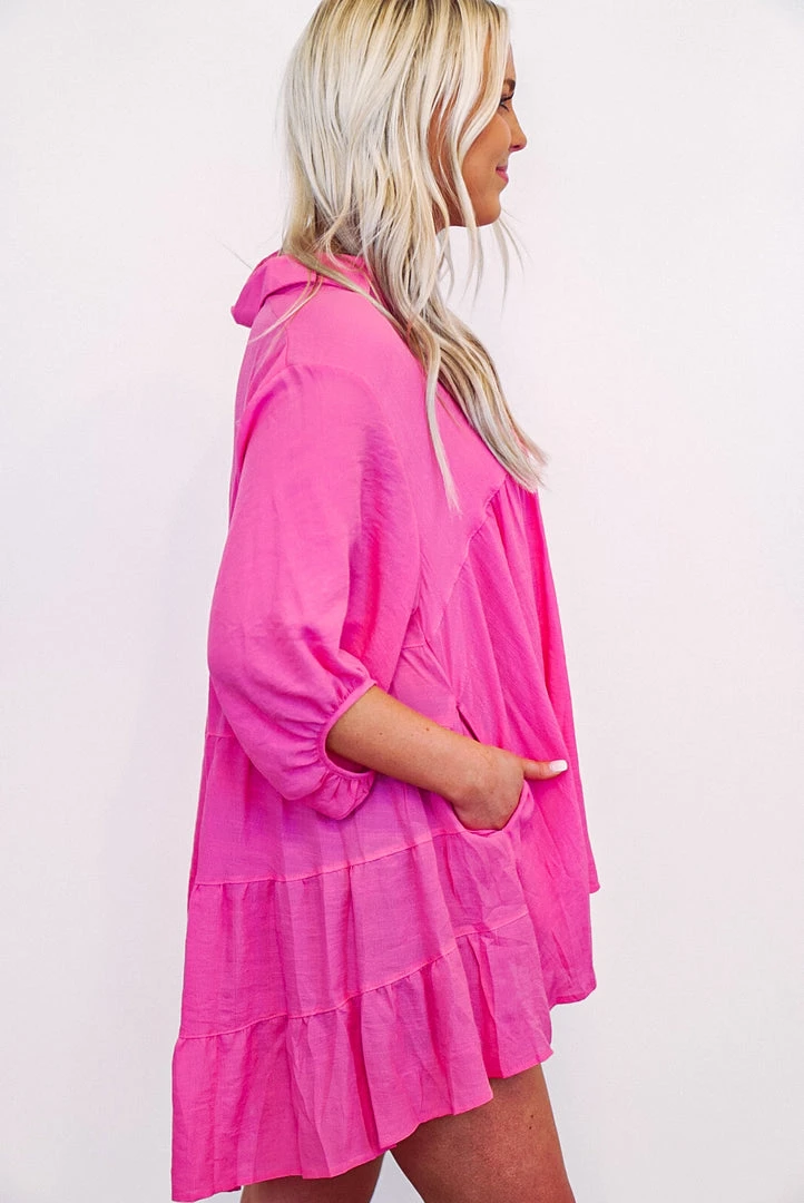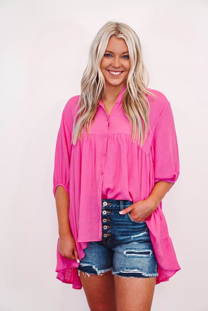 Bubble pink button down tiered tunic top