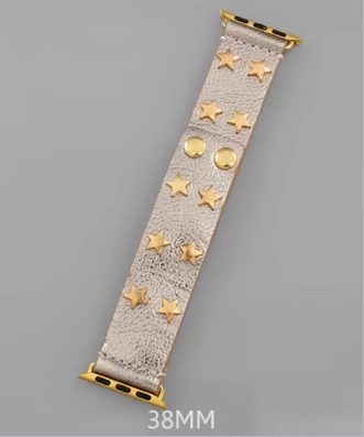 Silver leather studded stars Apple watch band 38mm
