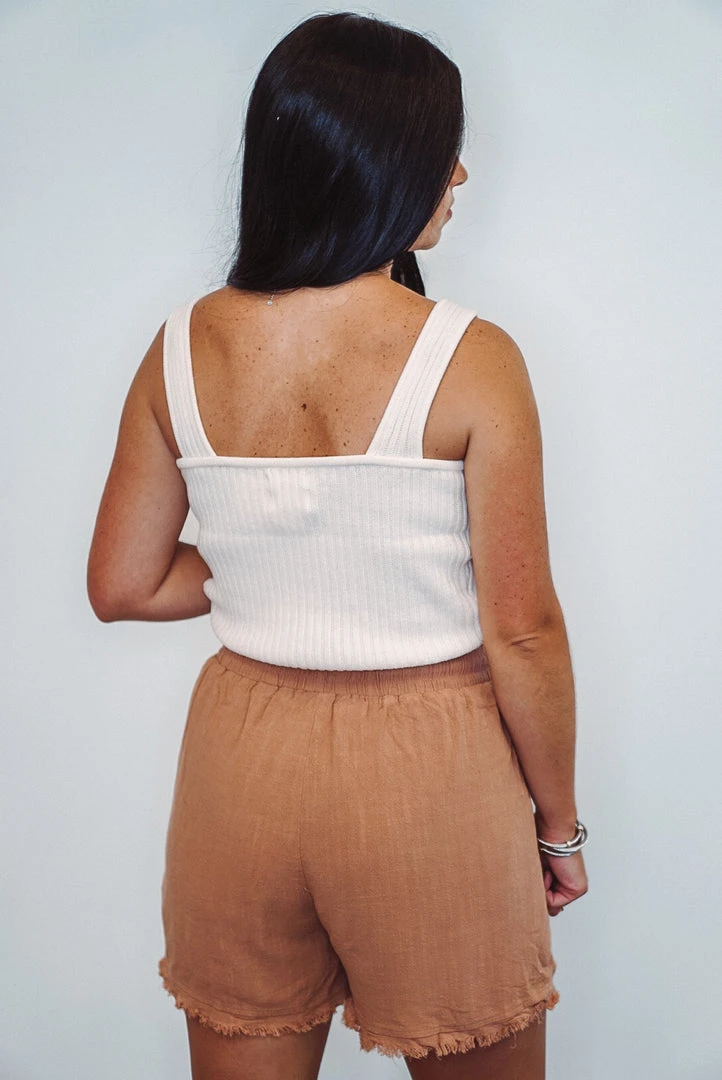 Cream Ribbed Knit Sweater Semi Cropped Tank Top