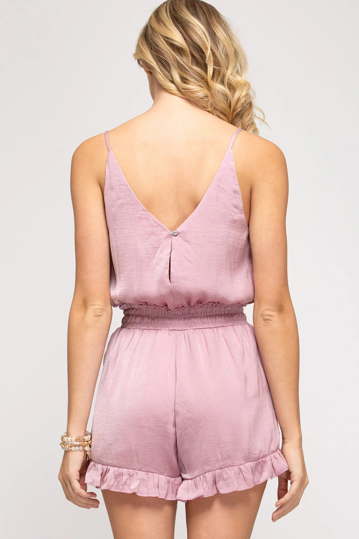 The must have romper for all your summer occasions. From date night to the beach you will be adorable in this trendy cami romper!! Features smocked waist, keyhole button closure and ruffled detail.