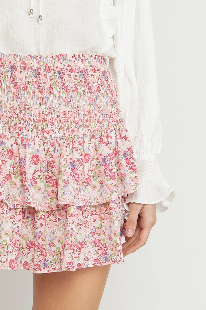 Pink floral smocked ruffle layered skort