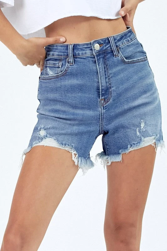Risen Jeans High rise distressed denim shorts in medium wash