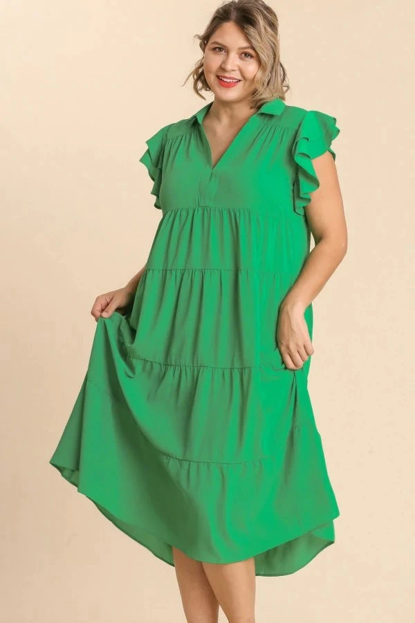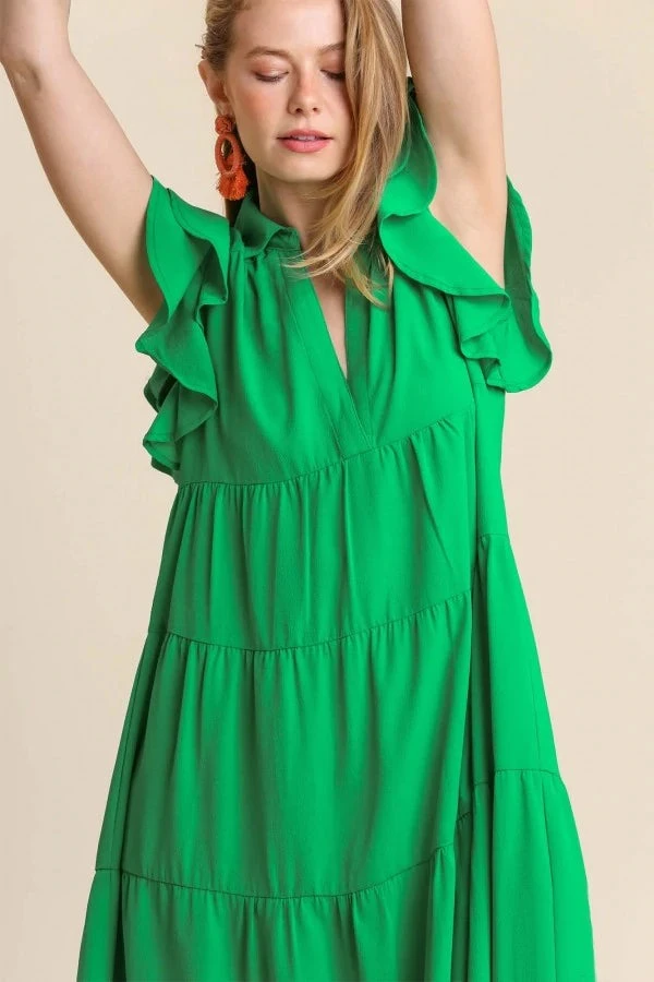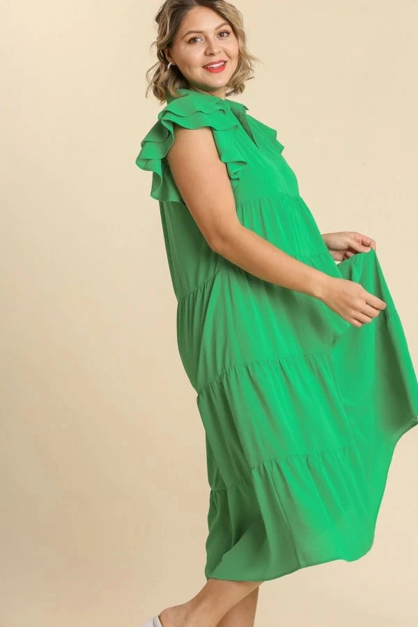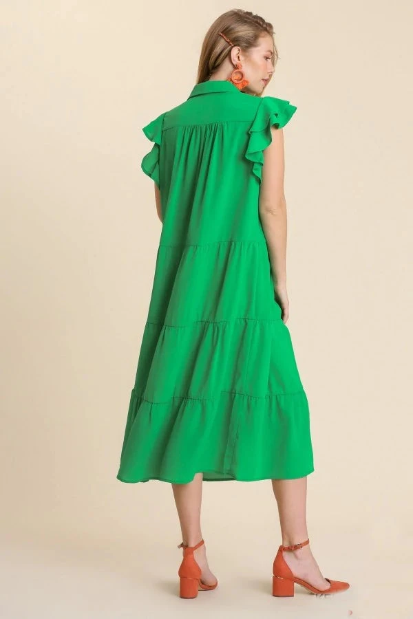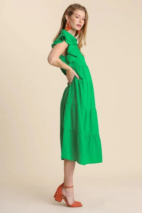 Tiered midi dress in kelly green