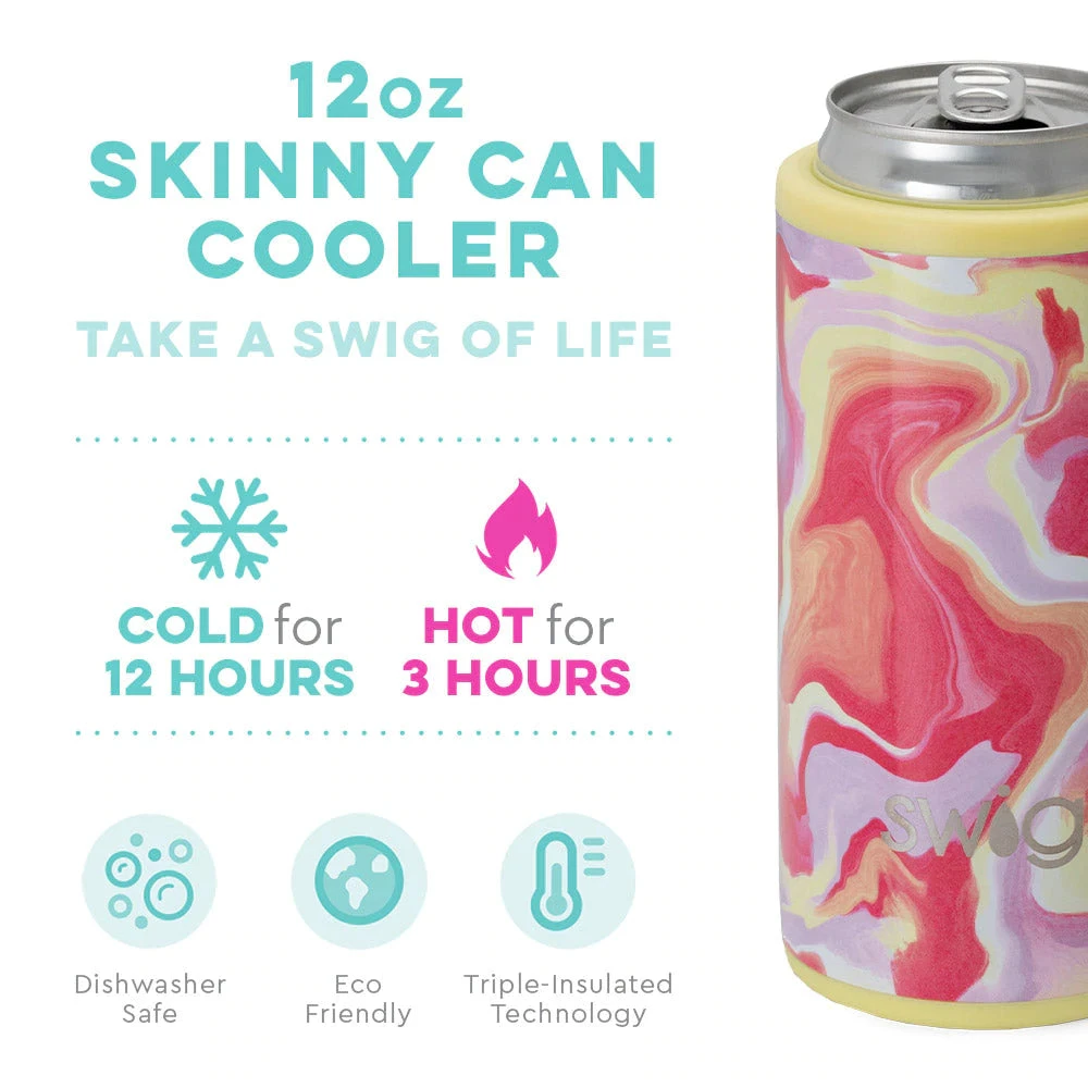 Swig Life Pink Lemonade skinny can cooler in swirled pink and yellow