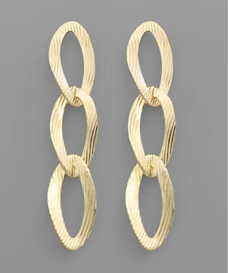 Textured Oval Dangle Gold Earrings
