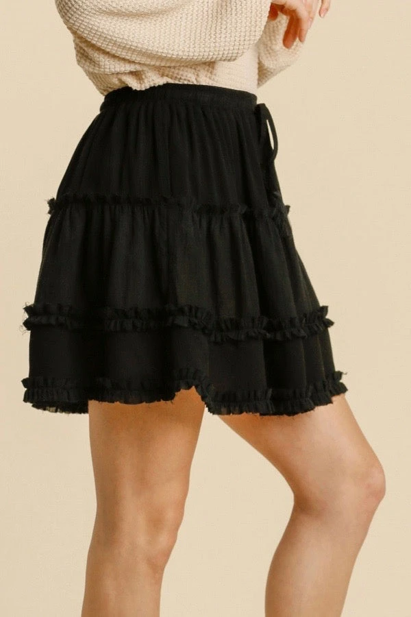 Women’s black tiered ruffle pull on skirt